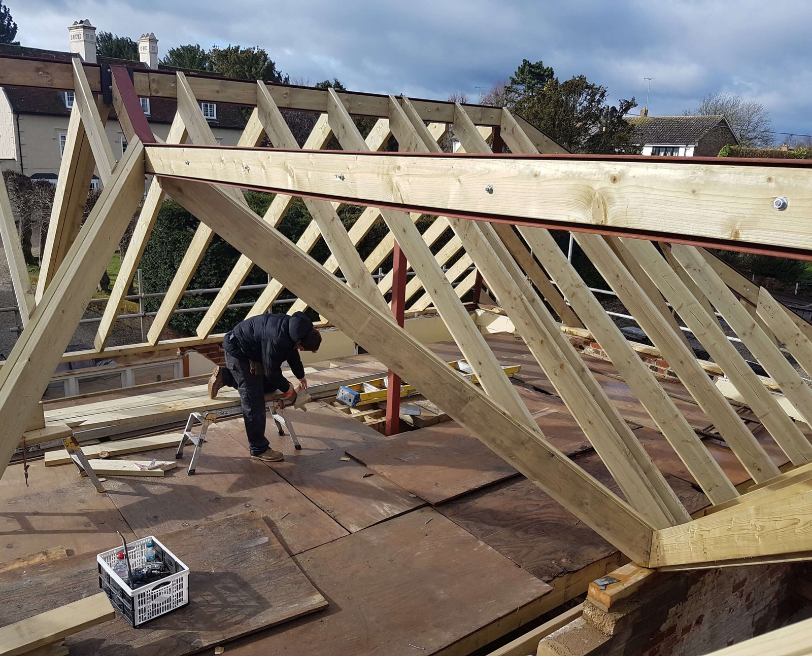 Our hand‑cut roofs combine traditional carpentry with exacting workshop practice to produce timber roof structures of lasting strength. Skilled joiners hand‑cut rafters, trusses, and bespoke details in our workshop before careful on‑site erection, ensuring each roof respects the character of the building while meeting modern performance expectations.